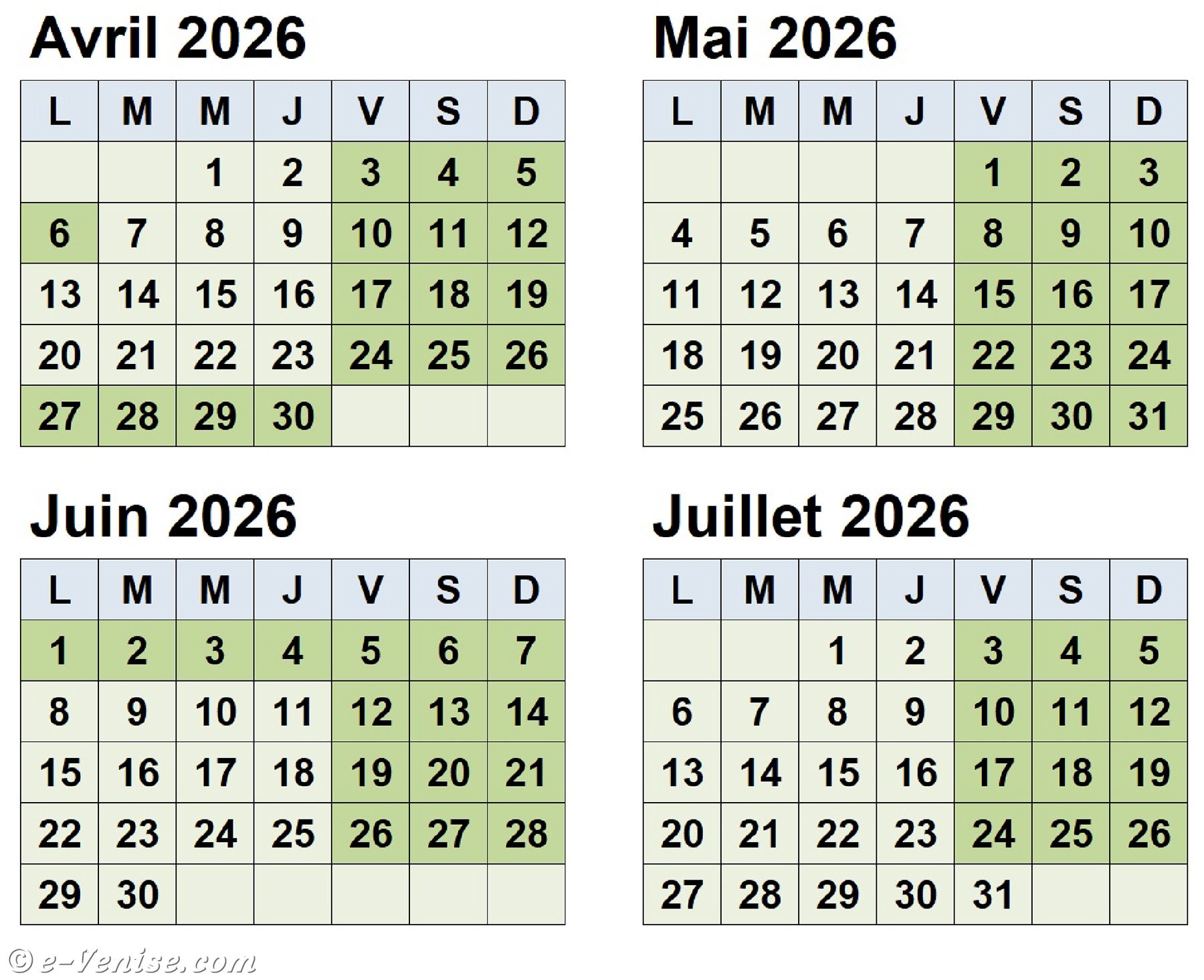 Juin 2026 : du 1er au 7, du 12 au 14, du 19 au 21 et du 26 au 28 juin.